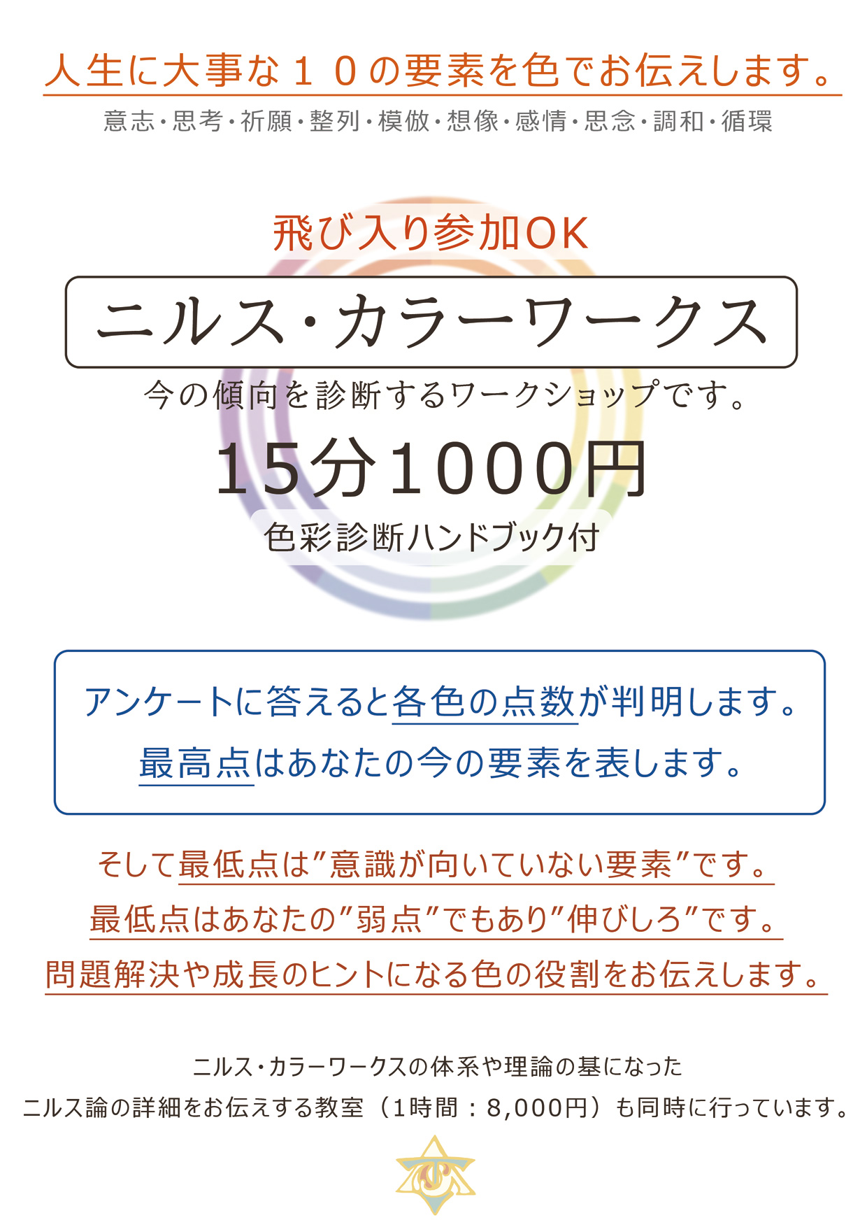ニルス・カラーワークスの体系の詳細、診断の基になっている「ニルス論」の個別解説教室も行っています。(1時間:8,000円)